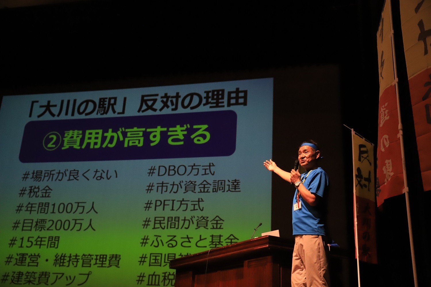 8月27日(火)に、大川市文化センター大ホールにおきまして開催いたしました、「大川の駅 反対決起大会」。